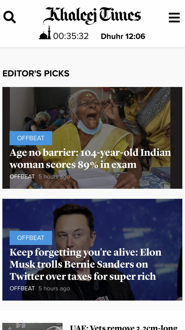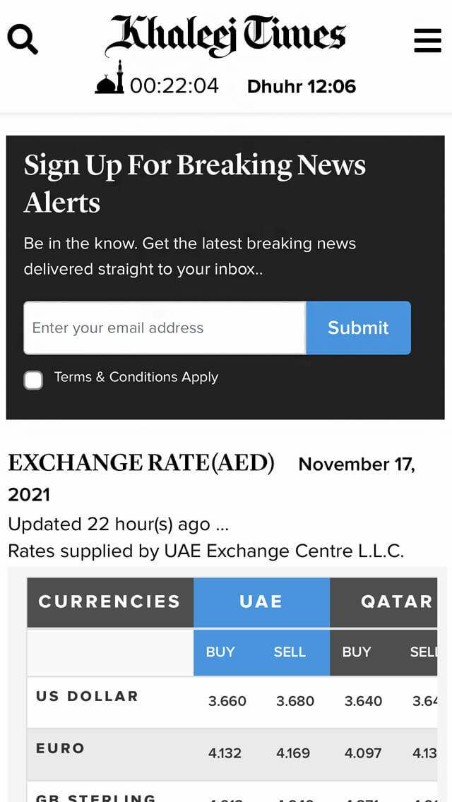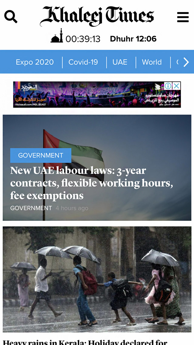 Khaleej Times Mobile Website